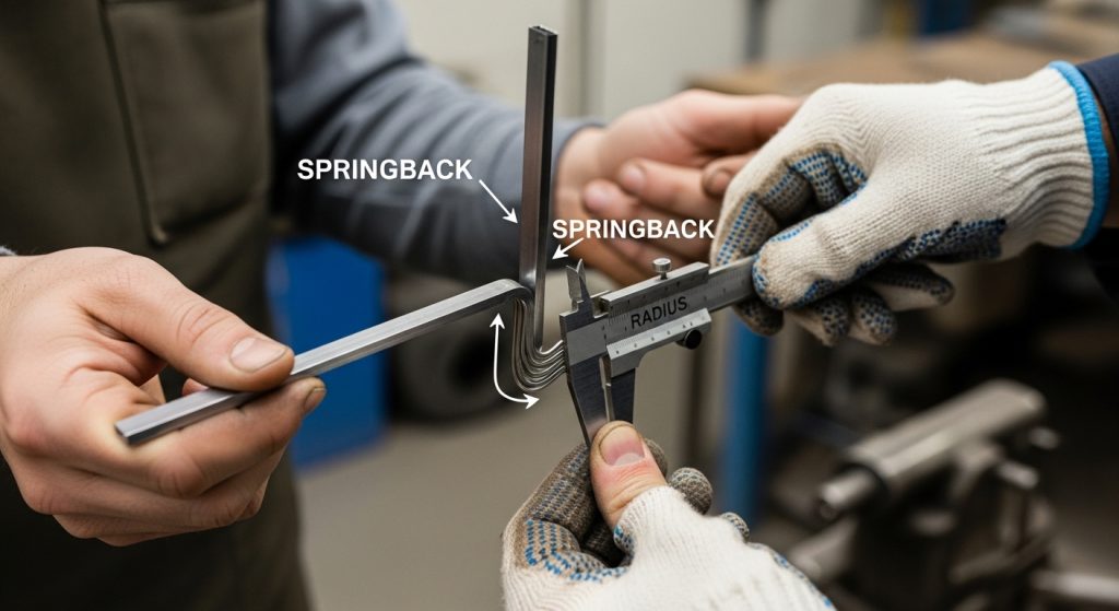 ダイ選択で最も見落とされがちな点の一つは、スプリングバックに与える影響です. スプリングバックは、パンチが圧力を解放した後、金属が元の形状に戻ろうとする現象です.