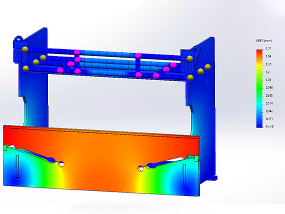 有限要素解析 (醜い) プレスブレーキ設計に適用され、実際の作業条件下での構造性能をシミュレートし最適化します. 応力分布の解析によって, 変形, および積載能力, 機械のフレームが最大強度を達成することを確実にしています, 精度, そして生産前の耐久性.